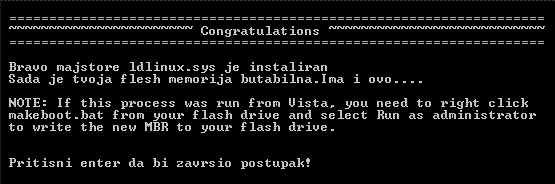 6. Congratulations you have successfully installed Windows XP Mini into a USB Flash Disk, now Press Any Key to Exit.